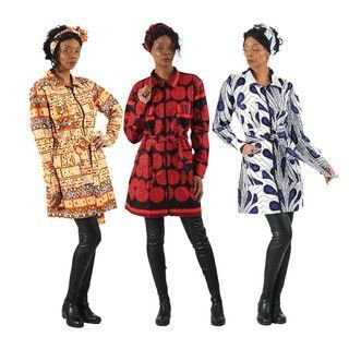 IBlend modern fashion and African style with this Set Of 3 ASSORTED African Print Zipper Jackets. These sleek jackets come in assorted eye-catching African prints. This jacket has a collar, a zipper down the middle, long sleeves, a tie-belt around the waist, and a matching head wrap. Two flap pockets at the chest and two more at the hip. Great for layering in colder weather, this tunic-length jacket pairs perfectly with leggings or jeans. You can wear it without the belt for a more relaxed fit, or add the belt for a more fitted look. The prints are so vivid and striking that compliments are a given! Upgrade your wardrobe with this stylish African print zipper jacket. 100% Cotton. Made in India. C-WK424S